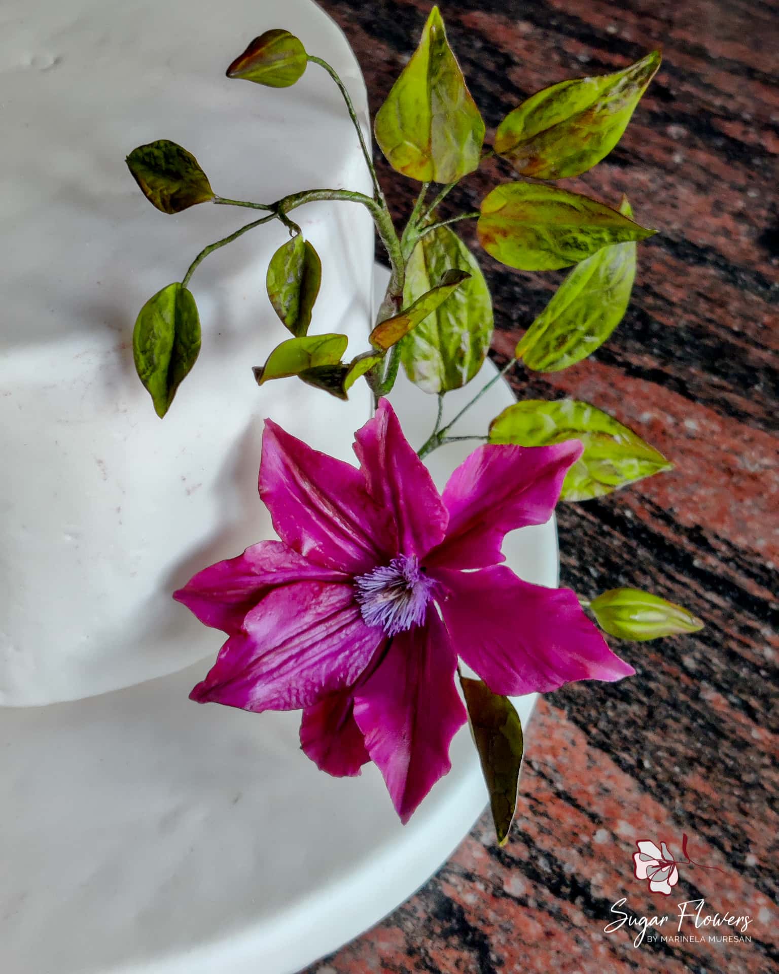 1. Ce material este mai potrivit pentru Clematis: foaia de vafă, pasta de zahar sau porțelanul rece? Fiecare material are specificul sau si ava ntajele proprii. Foaia de vafă are o calitate remarcabila: este extrem de usoara, ceea ce ofera avantajul de a fi un decor care nu ingreuneaza si nu afecteaza absolut deloc stabilitatea tortului. Pasta de zahar este un material cu care poti reproduce in mod hiper-realist floarea, în timp ce porțelanul rece oferă o durabilitate eternă și o finețe deosebita. La curs, discutăm aplicabilitatea fiecăruia.