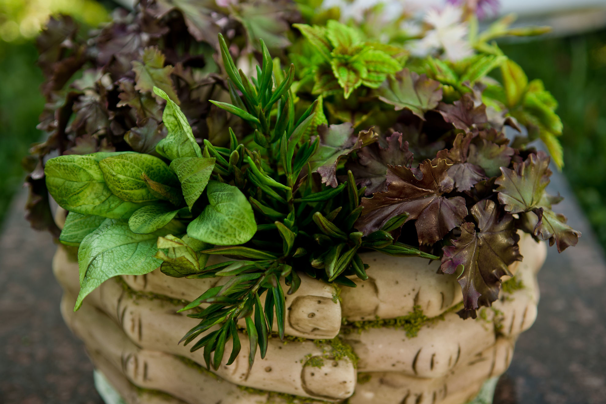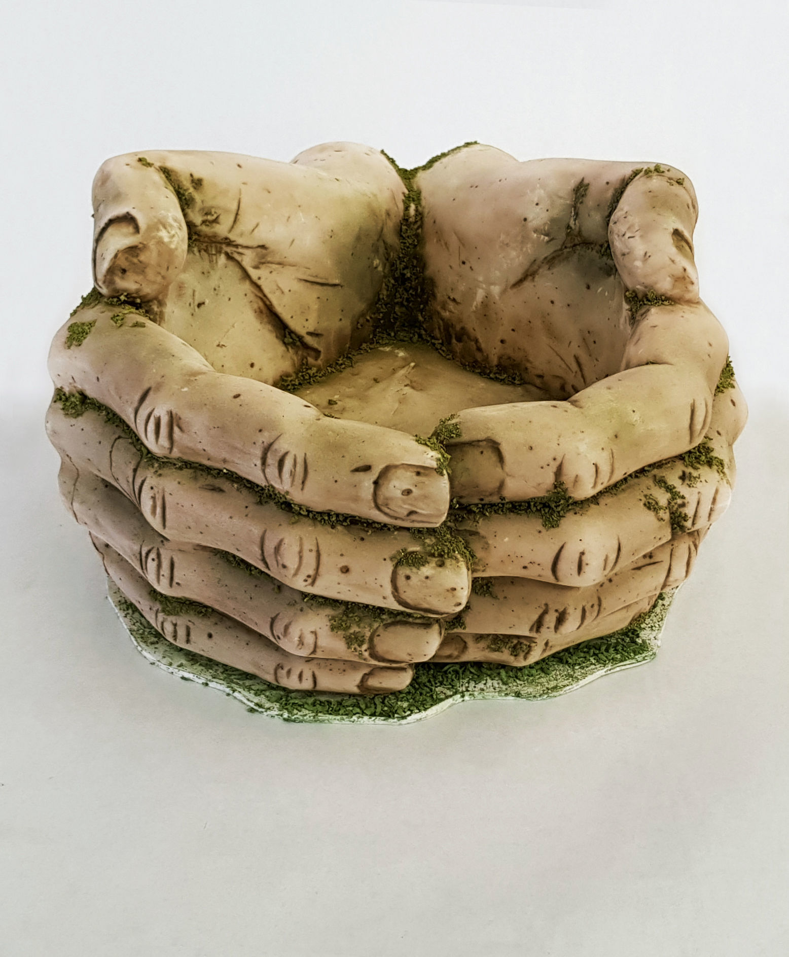 In alta ordine de idei, participarea aceasta insemna si prima mea iesire cu o lucrare in cadrul unui eveniment international. In plus, a mai insemnat o premiera importanta, intrucat duceam in Germania o lucrare realizata in colaborare cu sotul meu, Ioan Muresan, care sculptase, din ciocolata alba, doua maini pe care eu le-am umplut cu flori in zahar. A fost un proiect provocator si interesant pentru noi. Am topit aproximativ 10 kg de ciocolata alba, le-am turnat in bloc compact, apoi acest bloc a fost sculptat pana cand a luat forma a doua maini. Greutatea finala a mainilor sculptate a fost aprox.7 kg. Tot spatiul interior a fost umplut cu flori din zahar: Heuchera, Dianthus-garofita, Pilea involucrata, Salvia officinalis, Suculente.