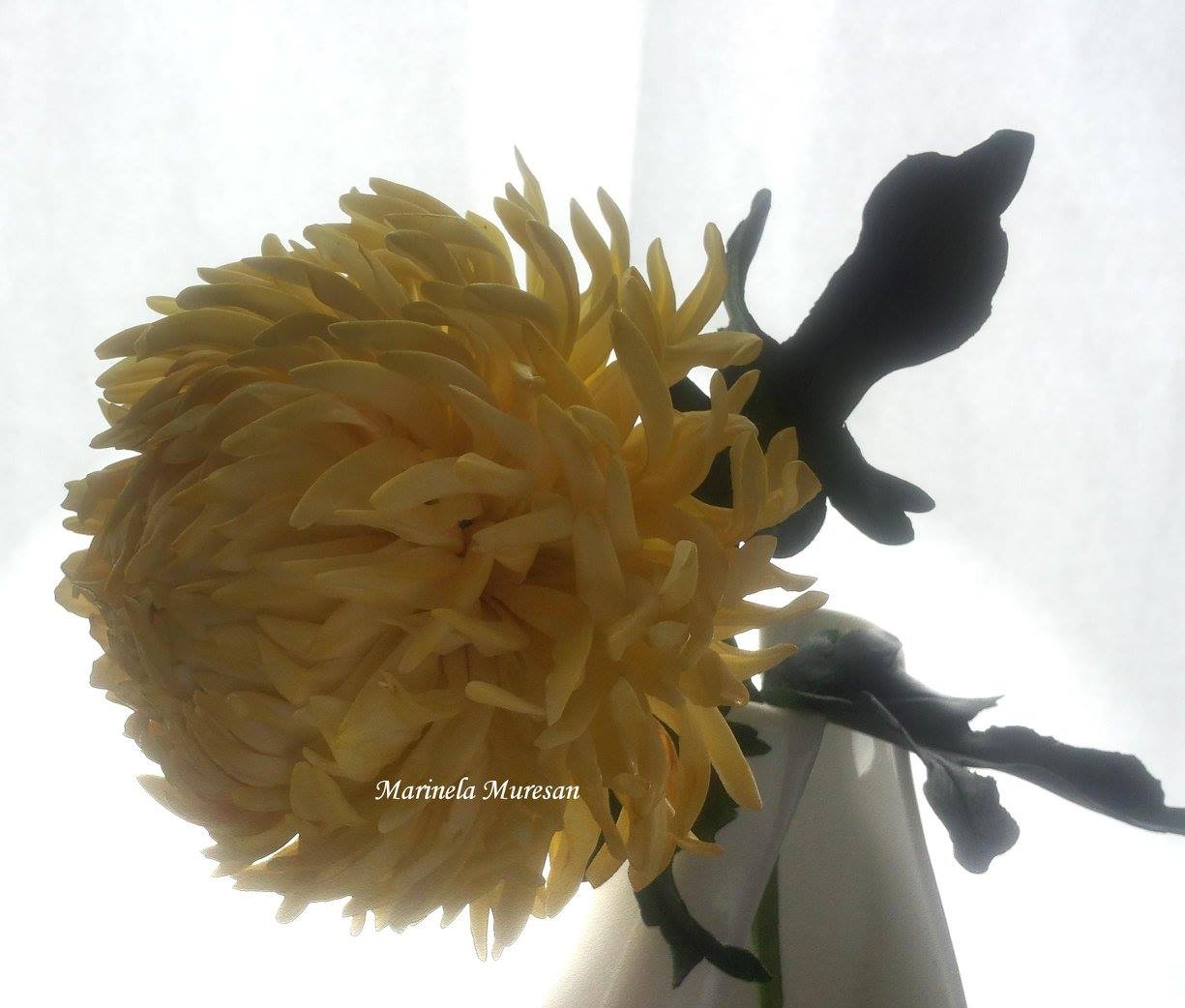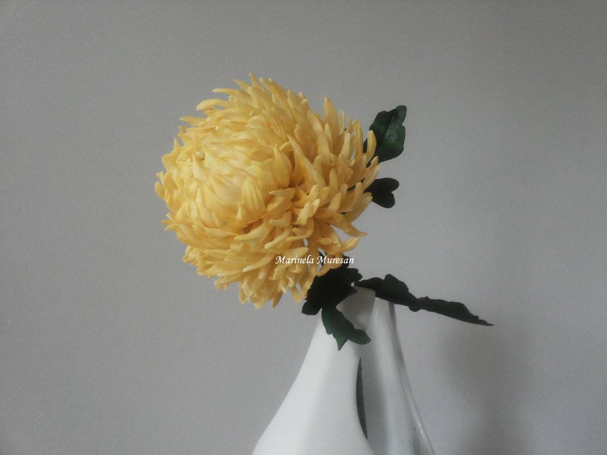 Modelul pe care eu l-am modelat face parte din categoria speciilor cu flori mari. Diametrul florii mele din zahar este de aproximativ 14 cm. In total, petalele modelate sunt peste 400, din care unele sunt lipite, iar altele sunt montate pe sarma. O asemenea floare inglobeaza multe ore de munca, E migaloasa, dar si spectaculoasa, in acelasi timp.