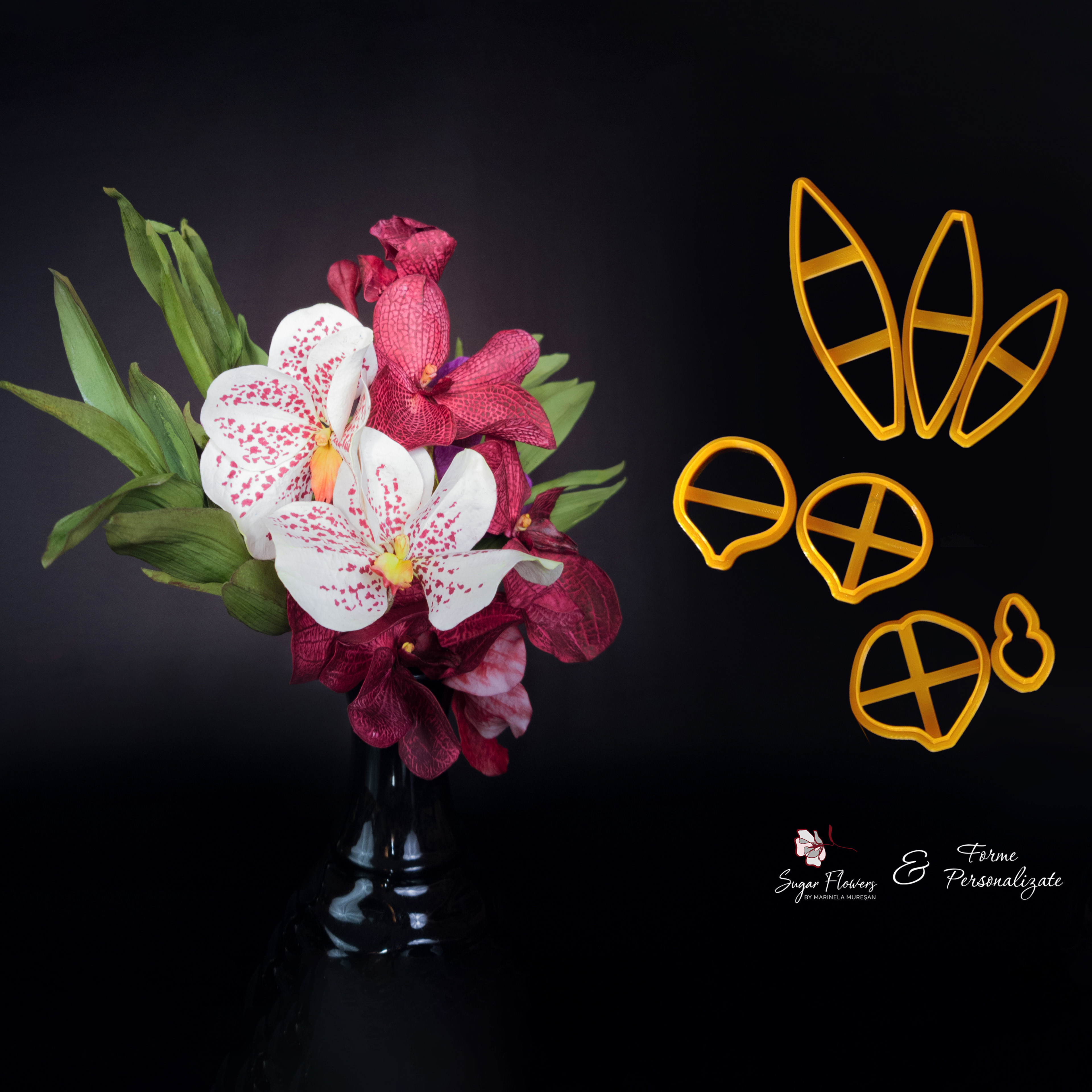 Set de decupatoare portocalii asezate langa Ordihee Vanda de culoare Alba si Roz
