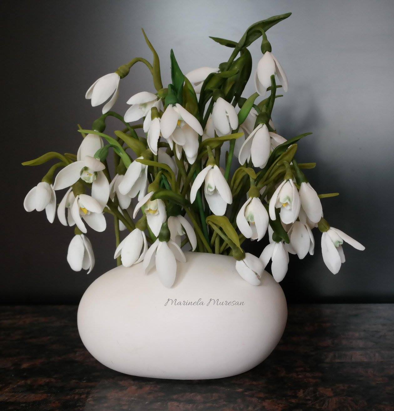 Eu am ales sa-l modelez din din pasta de zahar, dar si din portelan rece pentru ca acest material are o transparenta care permite ca floarea modelata sa aiba o asemanare si mai mare cu cea originala.