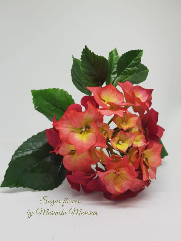 In momentul in care am decis sa modelez hortensia, am avut o problema: exista atat de multe variante, atat de multe culori, incat nu m-am putut decide pe care sa o aleg. Asadar, am decis ca voi face cate o crenguta din fiecare culoare. Am ales rosu, galben si albastru, culorile primare, vii, insufletitoare.