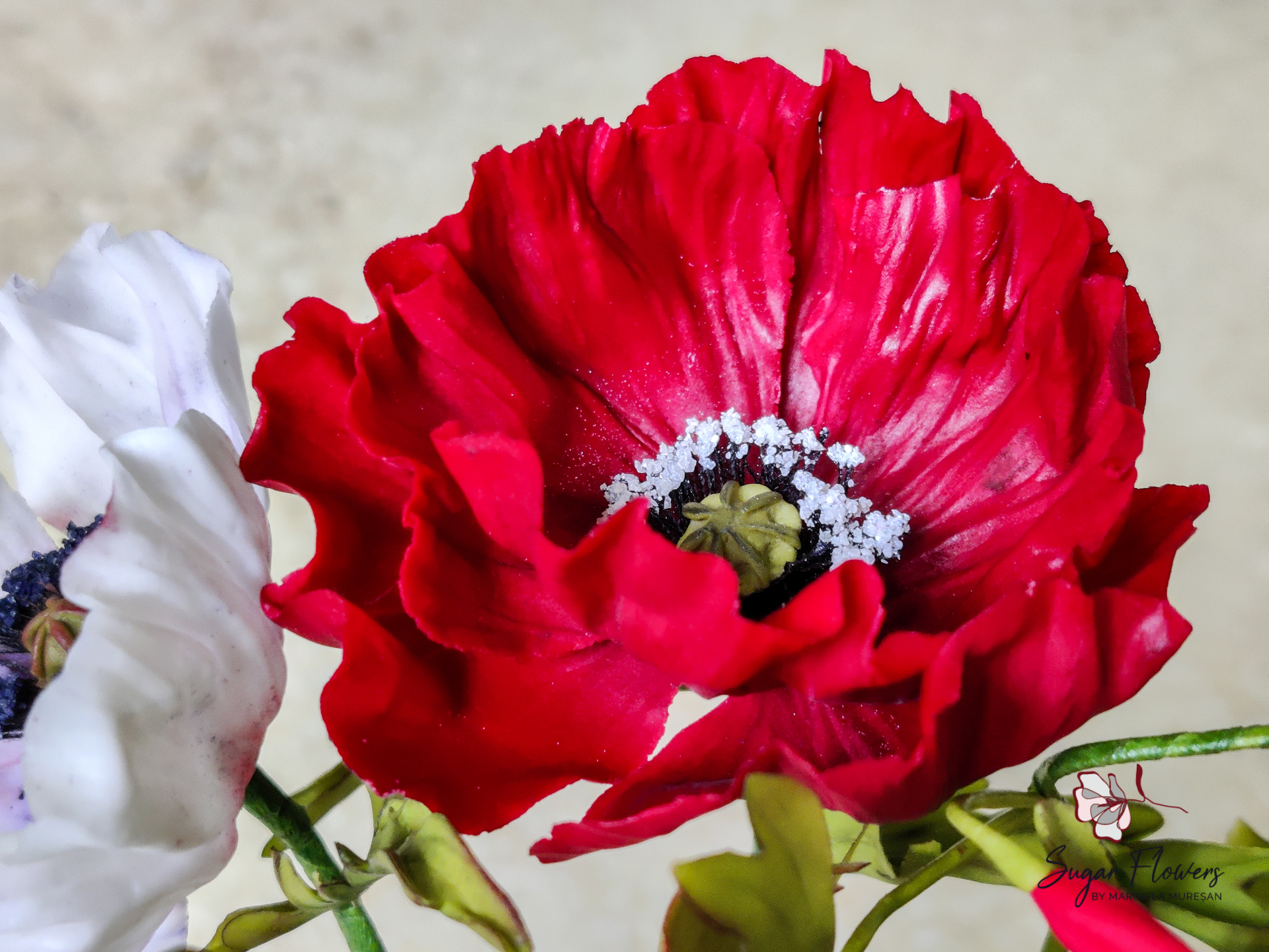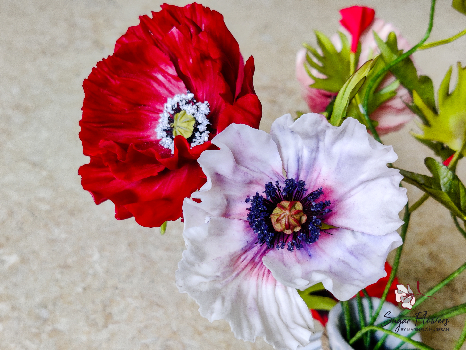 Culorile: Deși cel mai cunoscut mac himalayan este de un albastru electric intens, varietățile cultivate includ și nuanțe de alb cu reflexii liliachii (ca cel din plan apropiat) sau roșu purpuriu/grena (ca cel din plan secund).