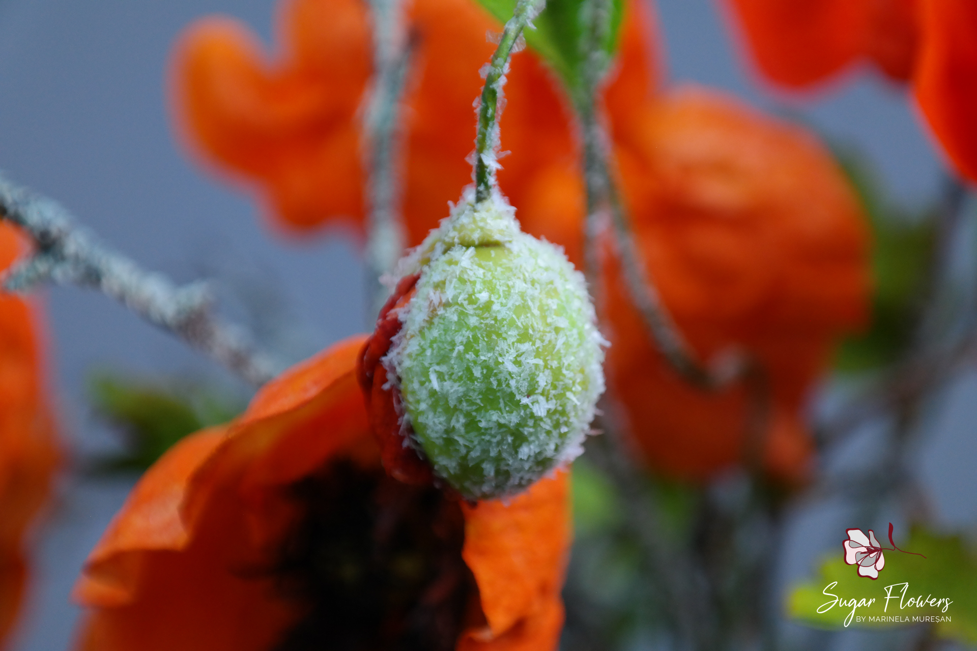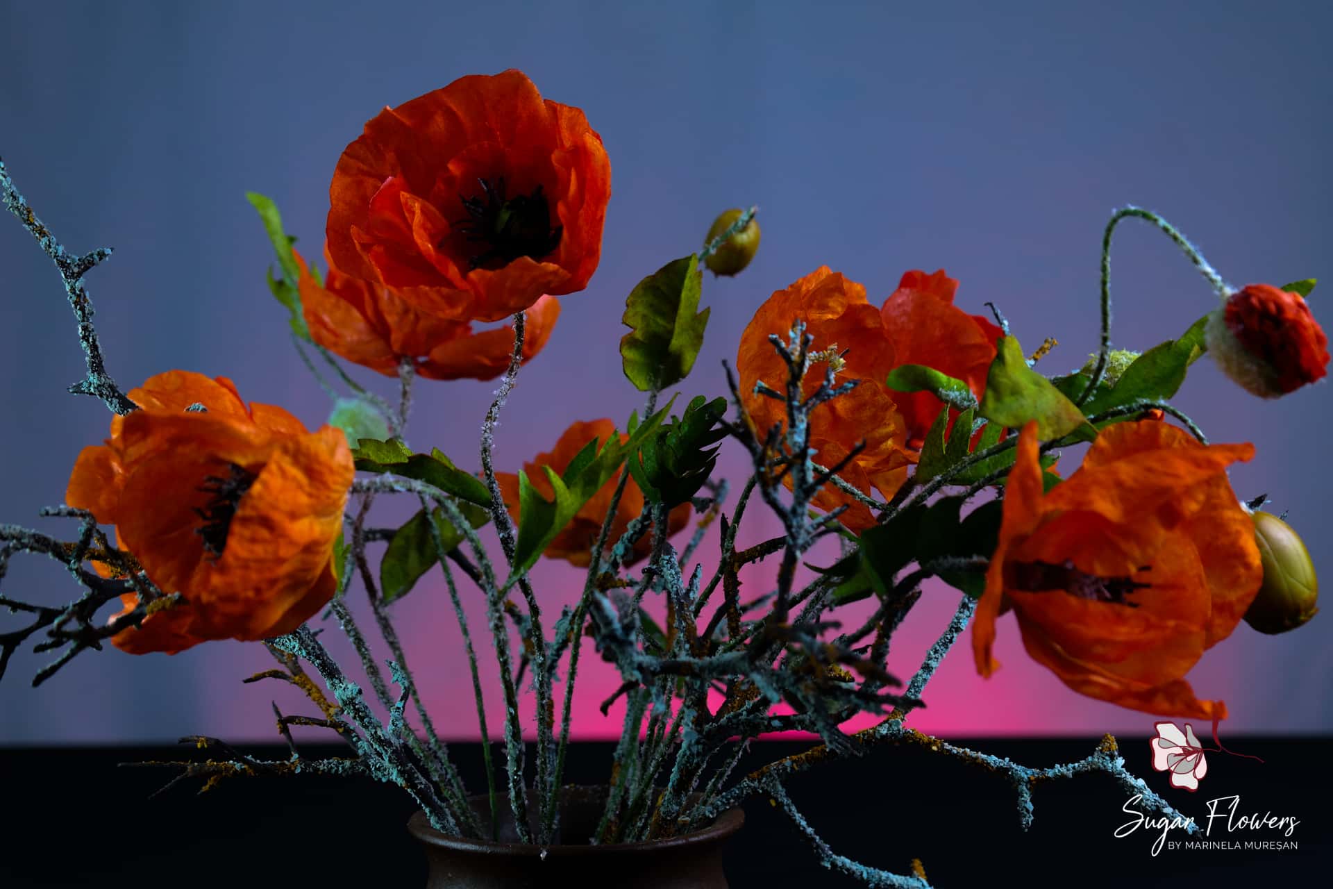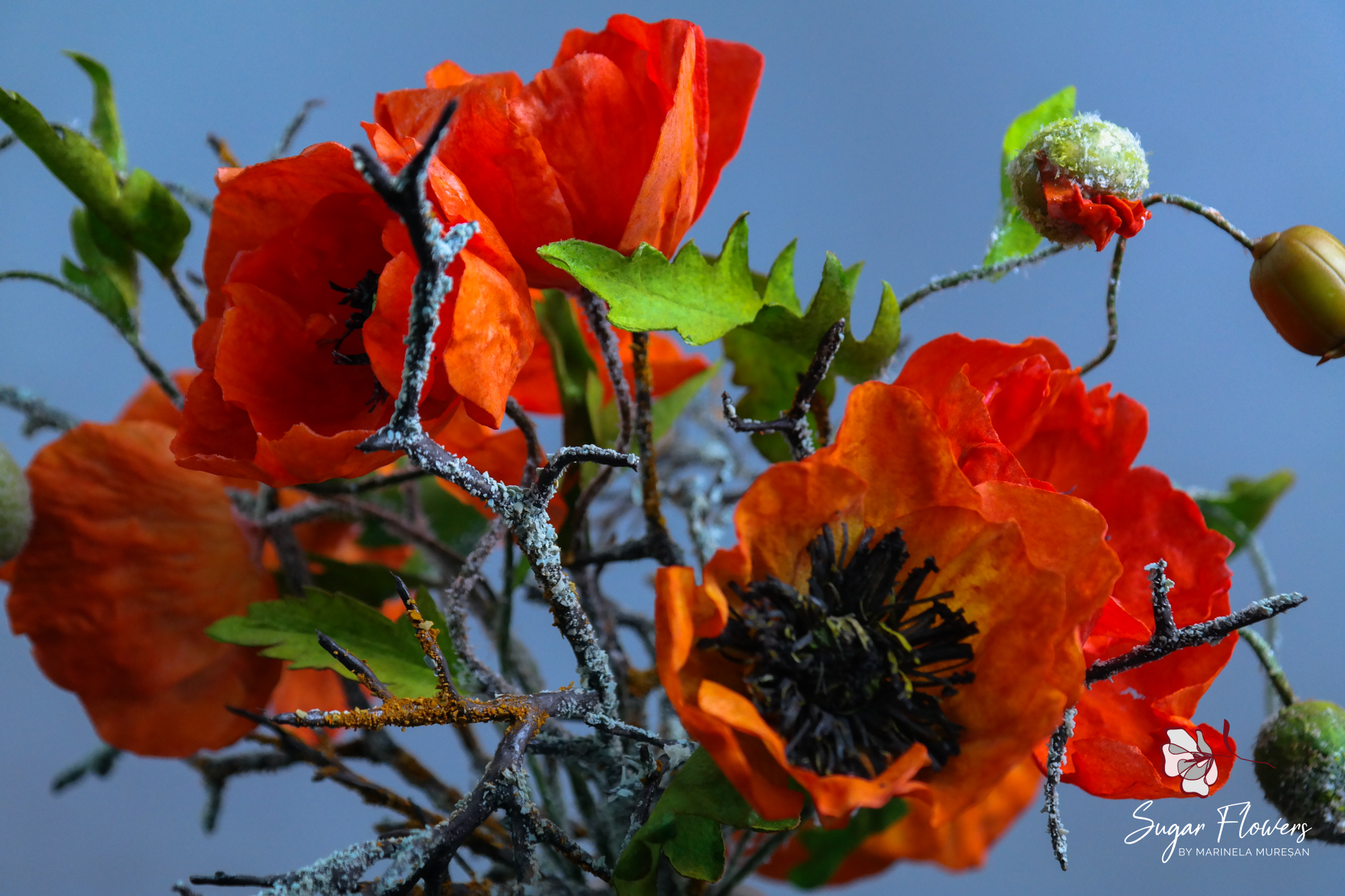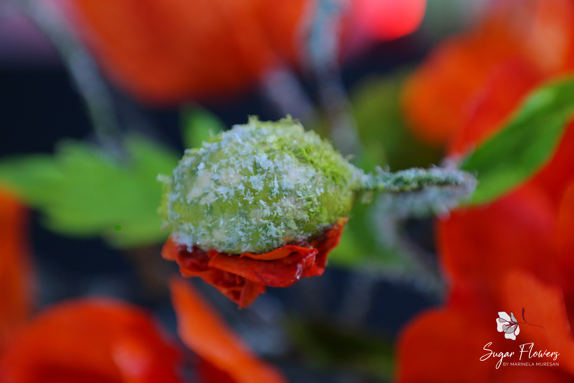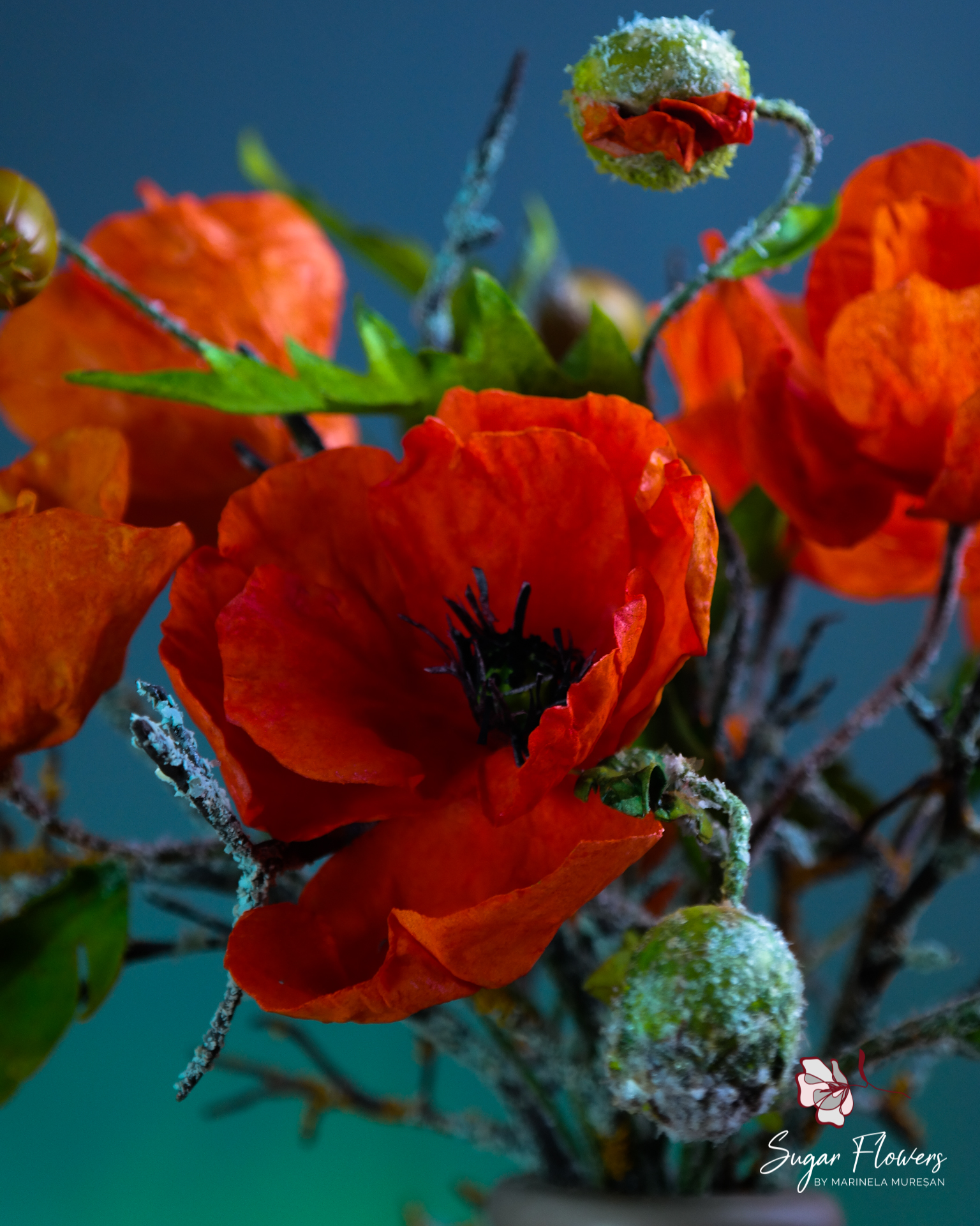 Macul meu din vafa este o floare care se lucreaza rapid datorita numarului redus de petale. Poate decora el insusi un tort, la fel de bine cum poate intra in diverse aranjamente florale, alaturi de alte specii de camp.Are o forma de cupa, formata din petale aranjate alternativ, pe doua randuri. Petalele macului sunt extrem de subtiri si delicate, delicatete care poate fi foarte frumos redata de foile de vafa.Forma florii este ajustabila datorita petalelor care sunt montate pe sarma si care pot fi aranjate in functie de nevoile specifice.
