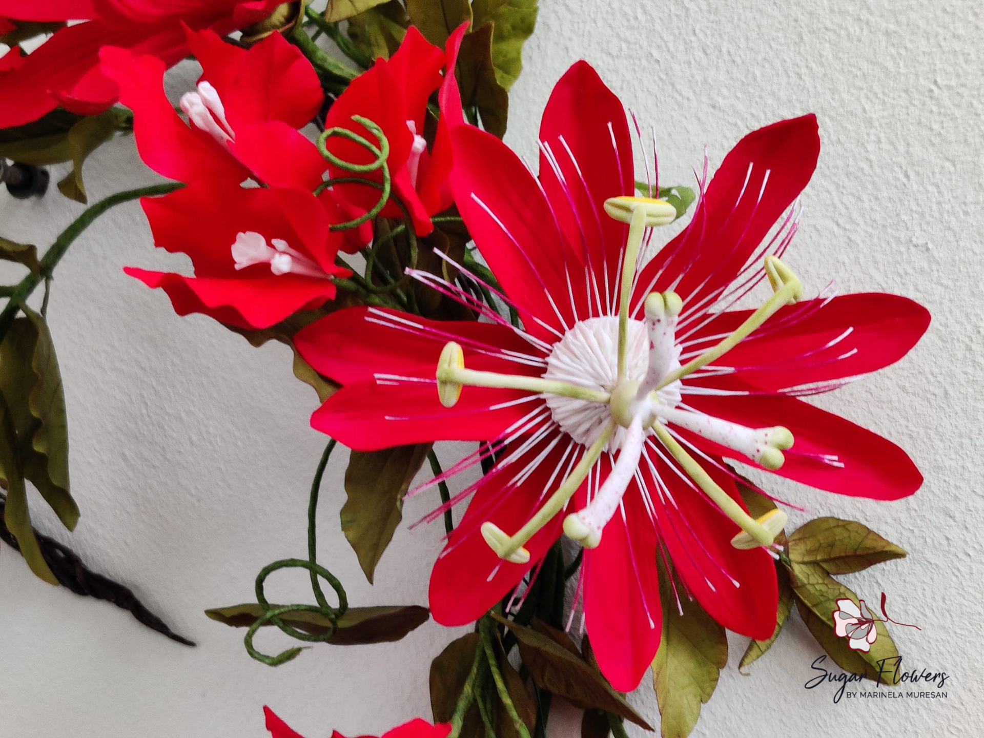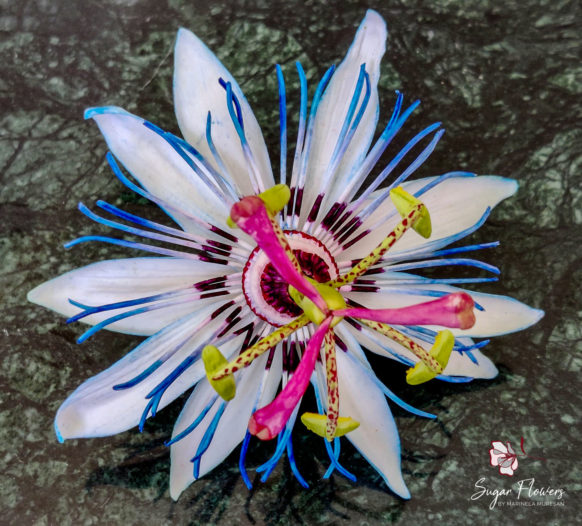 Florile de Passiflora pe care le-am realizat din pastă de zahăr încearcă să surprindă tocmai acest realism structural și bogăția detaliilor. Am acordat o atenție deosebită modelării fiecărui filament și redării nuanțelor vibrante, de la roșul intens la albastrul electric, pentru a păstra acea vitalitate sălbatică pe care o vedem în zonele tropicale. Deși este o piesă cu o arhitectură extrem de delicată, impactul său vizual este monumental, transformând orice tort într-o piesă centrală cu o estetică nobilă și avangardistă. Este o alegere ideală pentru evenimentele de vară, nunțile tematice sau pentru momentele în care doriți să aduceți un strop din misterul și măreția naturii direct pe masa de eveniment.