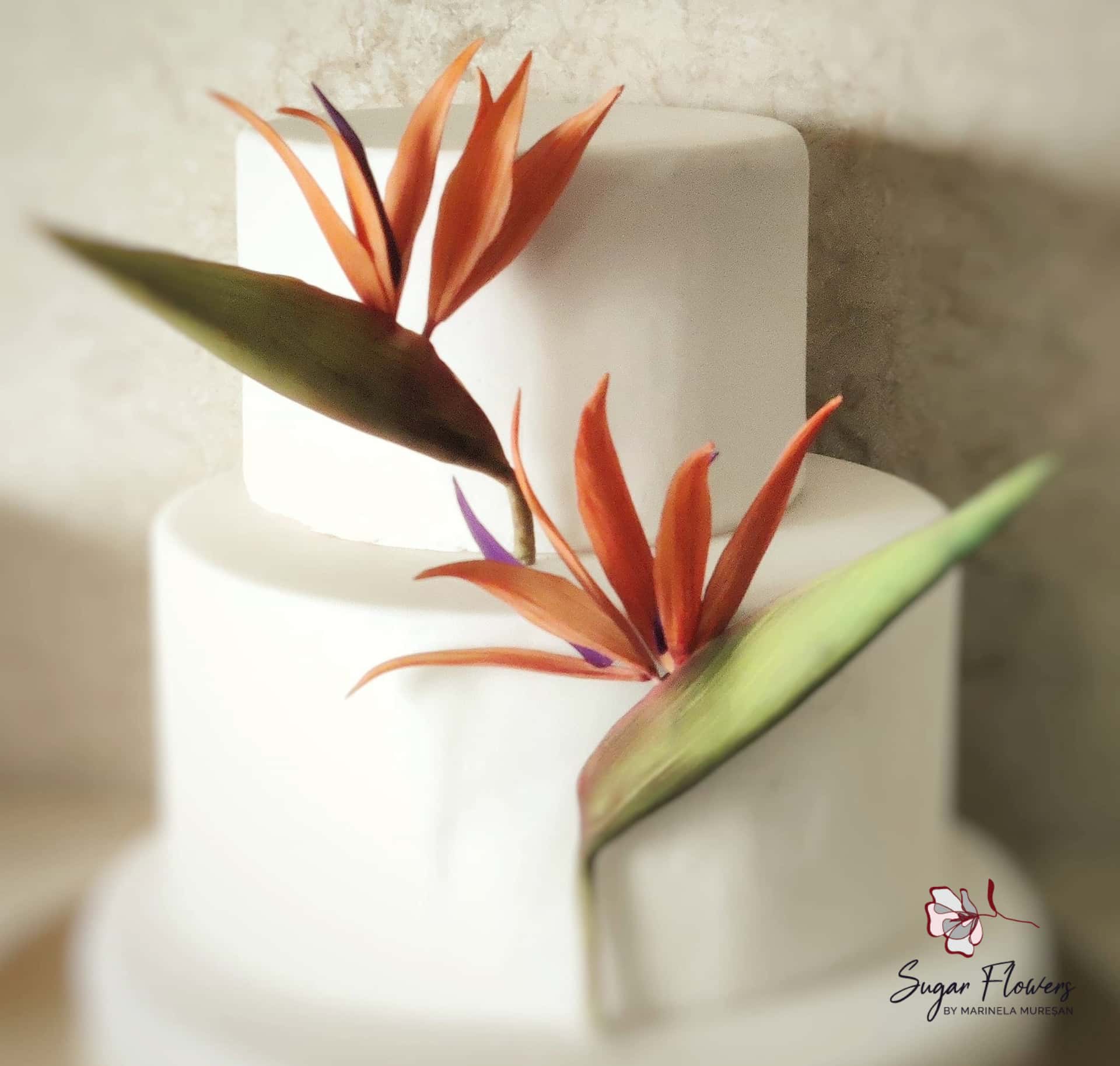 Florile de Strelitzia pe care le-am realizat din pastă de zahăr încearcă să surprindă tocmai acest realism arhitectural și dramatismul formelor sale. Am acordat o atenție deosebită texturii rigide a petalelor și nuanțelor vibrante de portocaliu-foc, pentru a reda acea prezență statuară pe care o vedem în grădinile botanice celebre. Deși este o piesă cu un aspect robust și impunător, detaliile fine ale picturii manuale o transformă într-o piesă centrală sofisticată, capabilă să dea un caracter nobil oricărui tort modern. Este alegerea ideală pentru decorurile de nuntă minimaliste, evenimentele corporate de lux sau pentru momentele în care doriți să aduceți un strop din grandoarea paradisului tropical direct pe masa de eveniment.