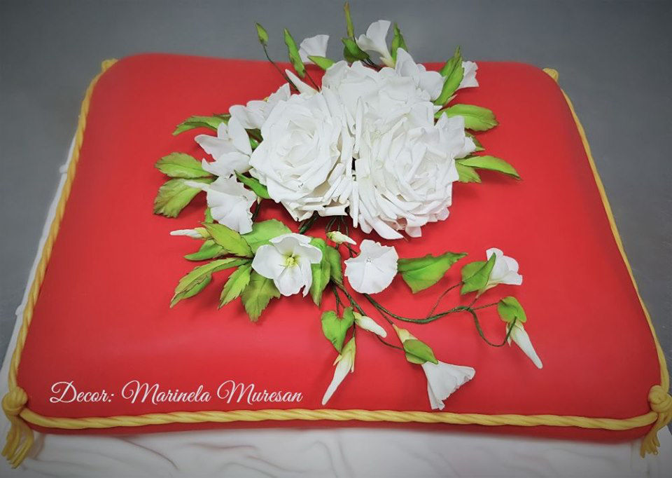 Tortul a fost realizat in colaborare cu Cofetaria Linquenda din Beclean, iar ornamentele (florile comestibile) au fost realizate de mine. Despre experienta modelarii florilor pentru Papa Francisc, am scris in proiectul special "Tortul oferit Papei Francisc" pe care va invit sa-l cititi.